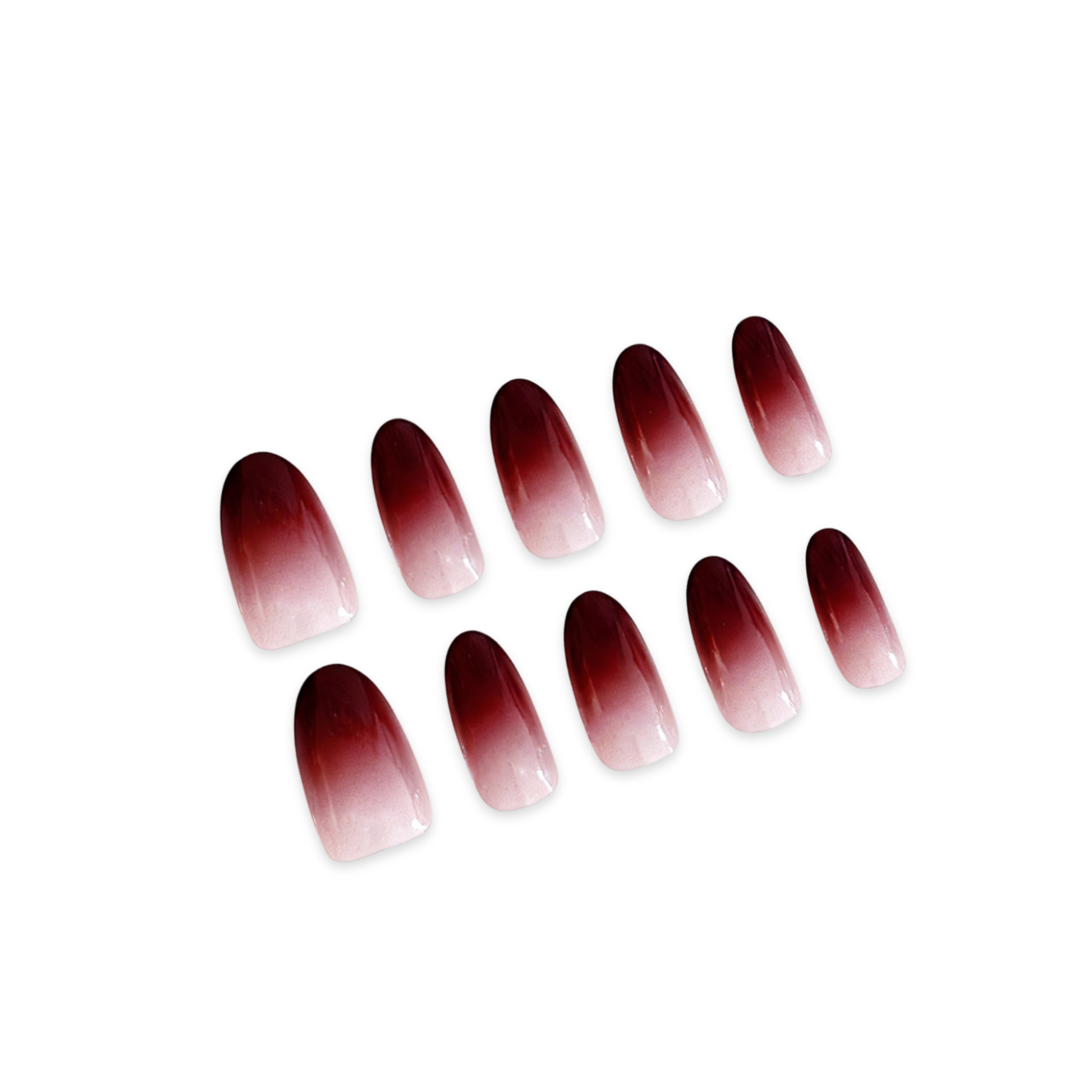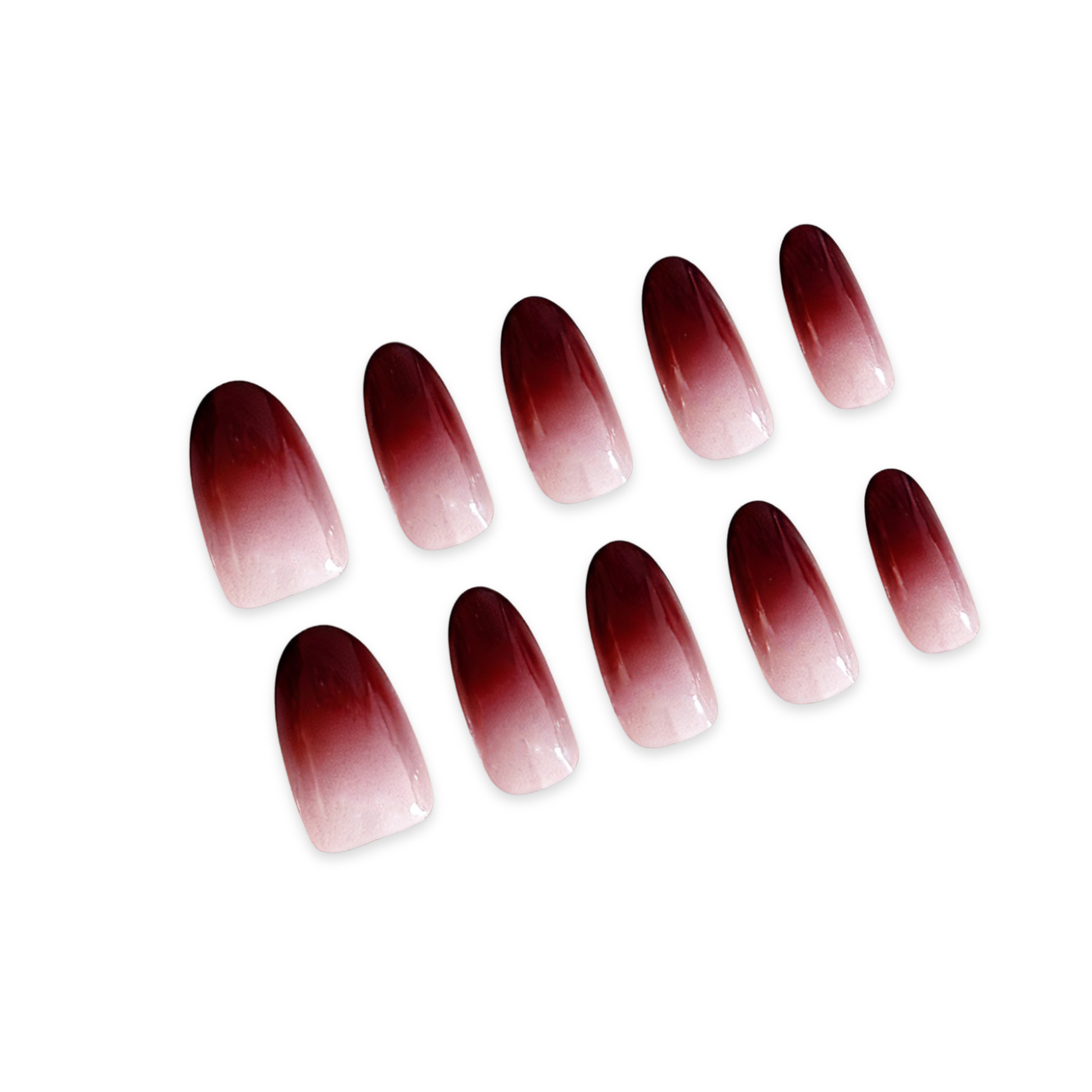 Each READY READY press-on is hand-tested for 30 days to ensure top quality. Cherry on the Top features a nude base with cherry-red fading from the tips. Its vibrant, gradient design adds a bold yet elegant touch to any manicure. Perfect for a standout, stylish look in seconds.