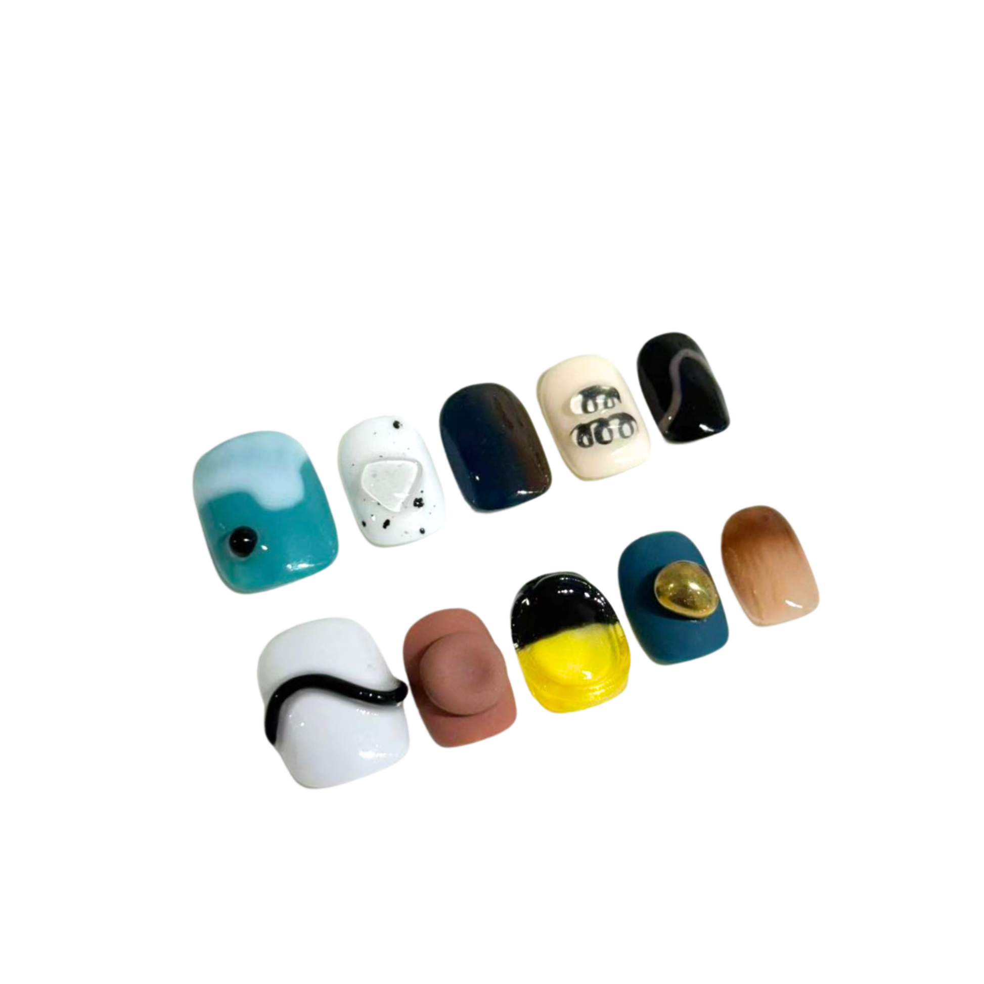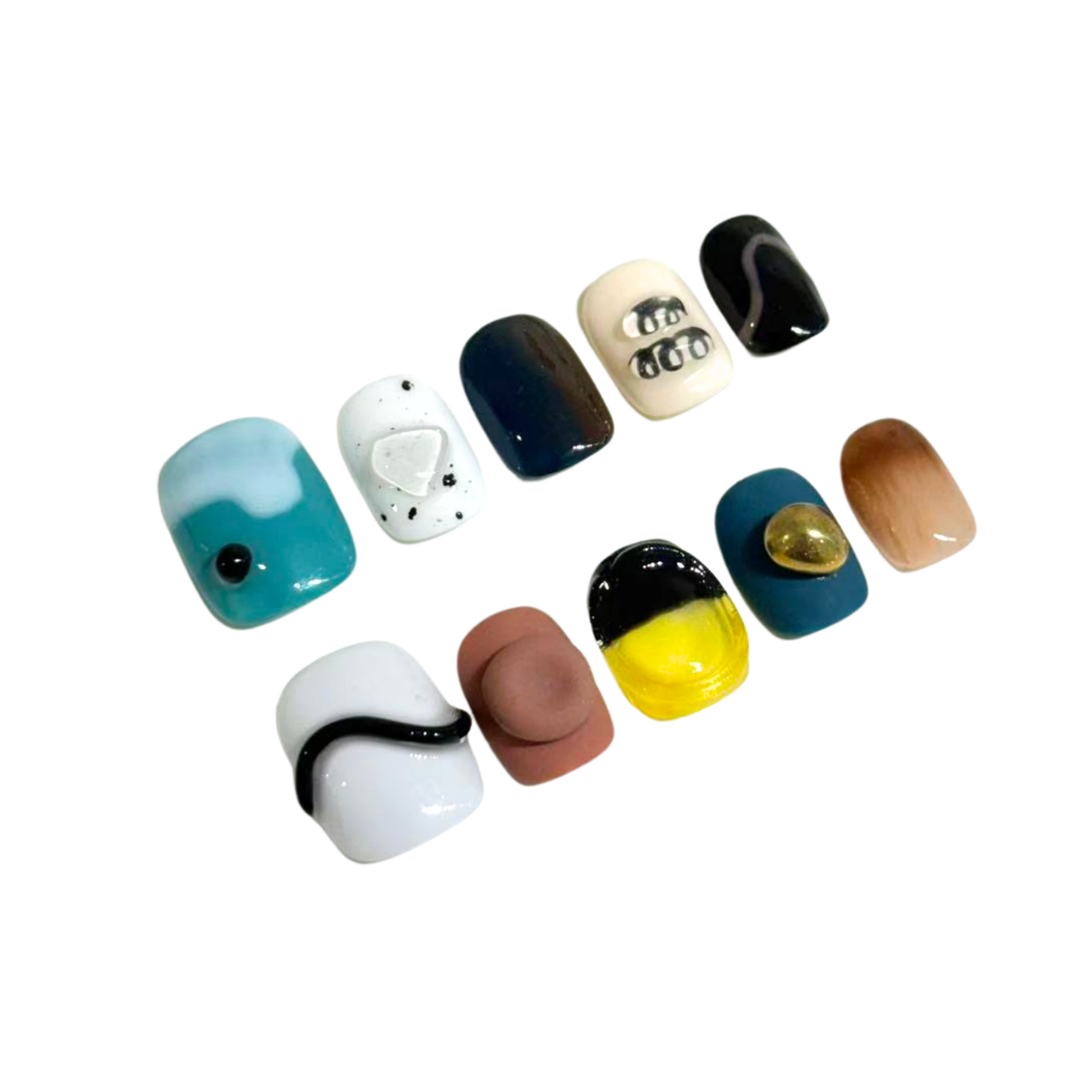 Each READY READY press-on is hand-tested for 30 days to ensure top quality.Blackbeard features an abstract pattern with colorful 3D dots and flowing lines. Its playful, artistic design adds a bold and creative touch to any manicure.