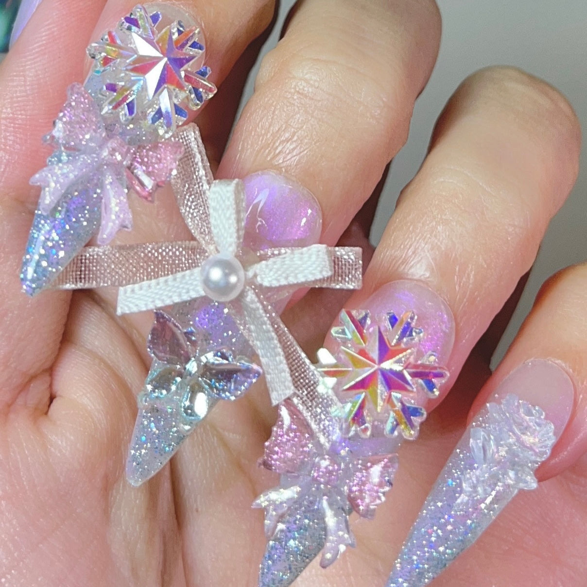 Each READY READY press-on is hand-tested for 30 days to ensure top quality.Blue Fairy Butterfly features an icy glitter base with blue and blush accents at the tips, decorated with 3D butterflies, snowflakes, and ribbons.