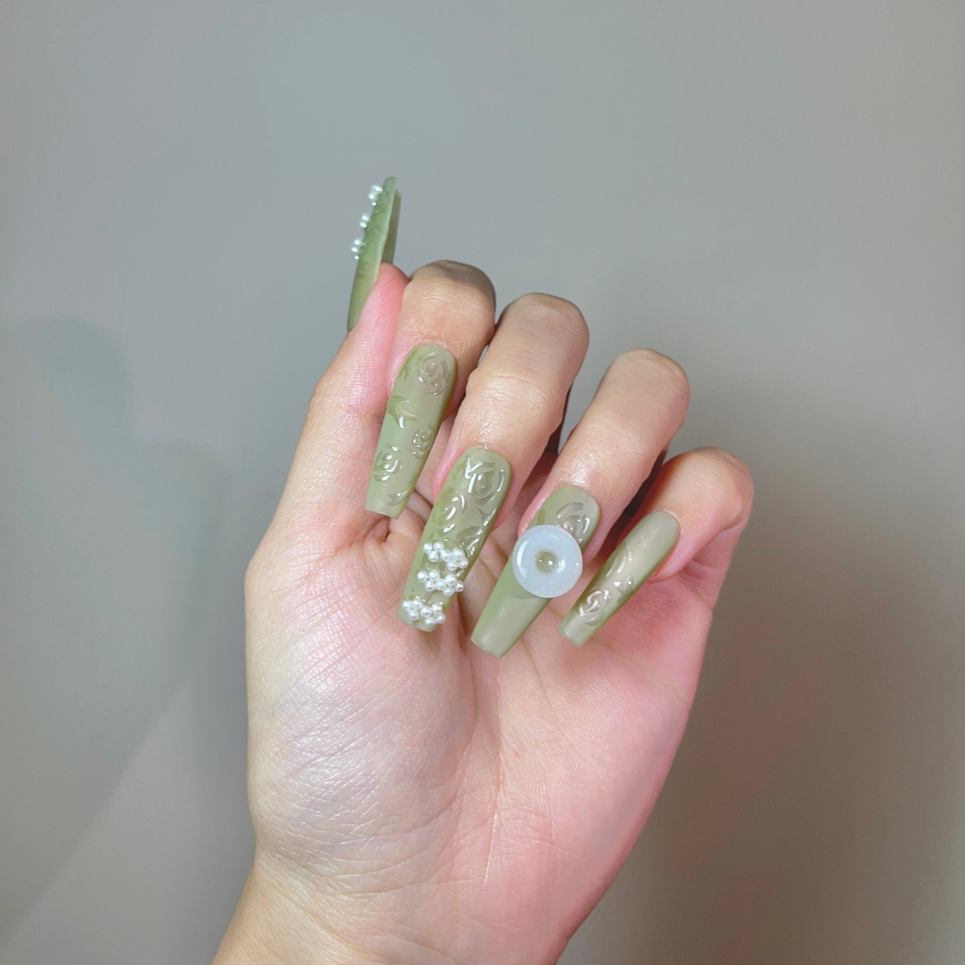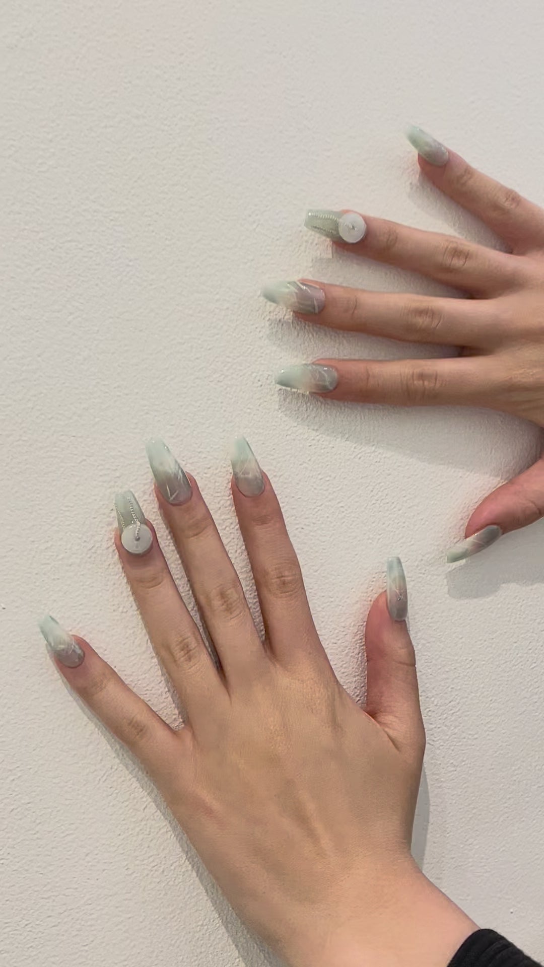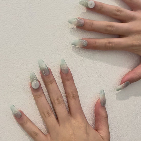 Each READY READY press-on is hand-tested for 30 days to ensure top quality. Bronze Ware features a light green base with a subtle, sophisticated sheen. Its minimalist, elegant design adds a fresh, chic touch to any manicure.