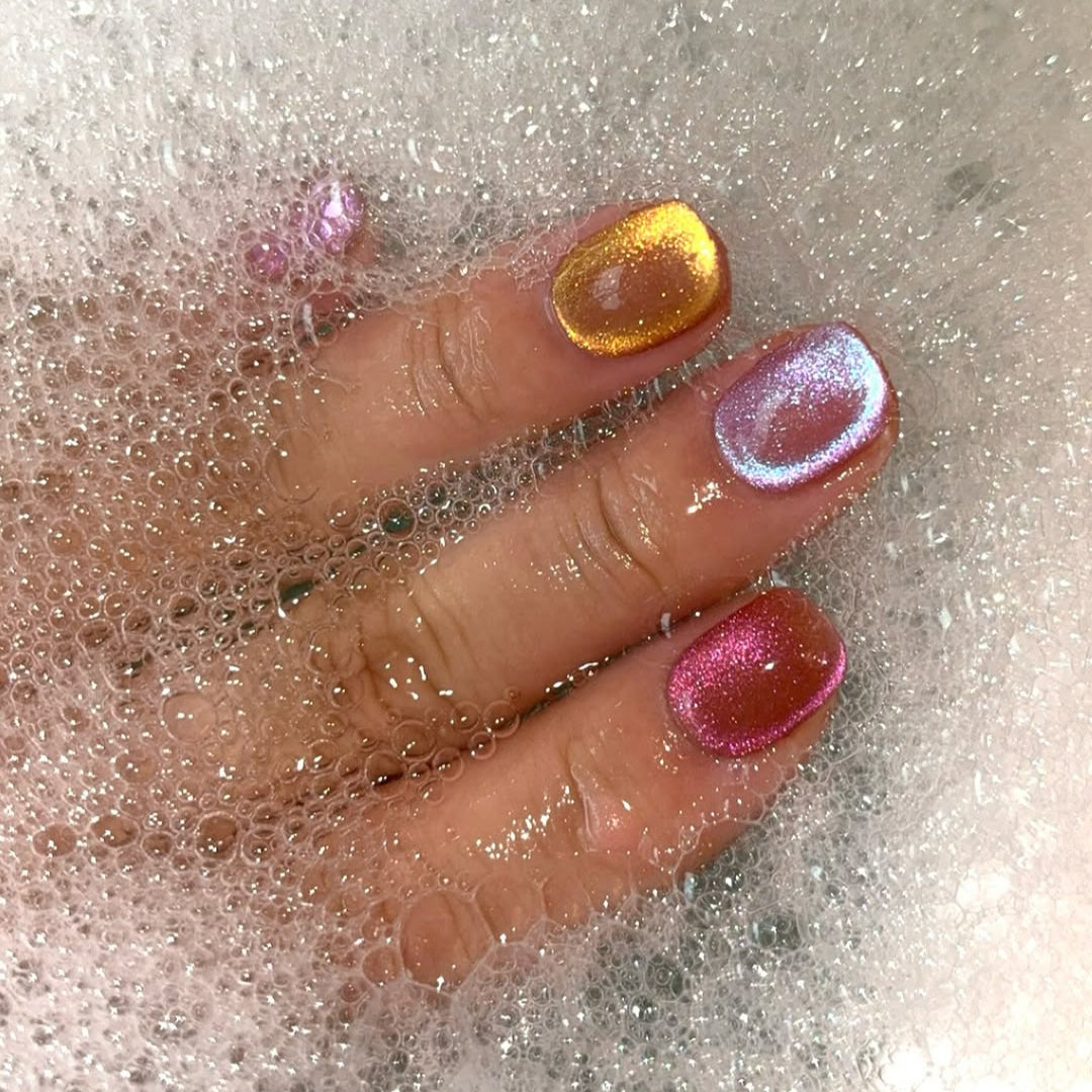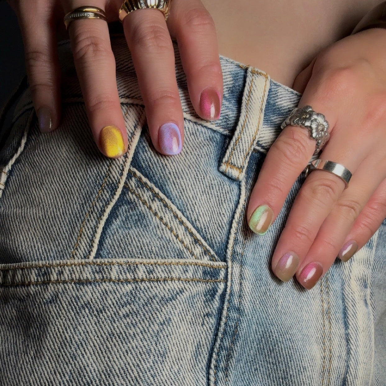 Each READY READY press-on is hand-tested for 30 days to ensure top quality.Candy Cat Eye features short, colorful cat-eye nails that look as delicious as fruity candy. Its clear base enhances the light-reflecting effect for a playful, eye-catching manicure.