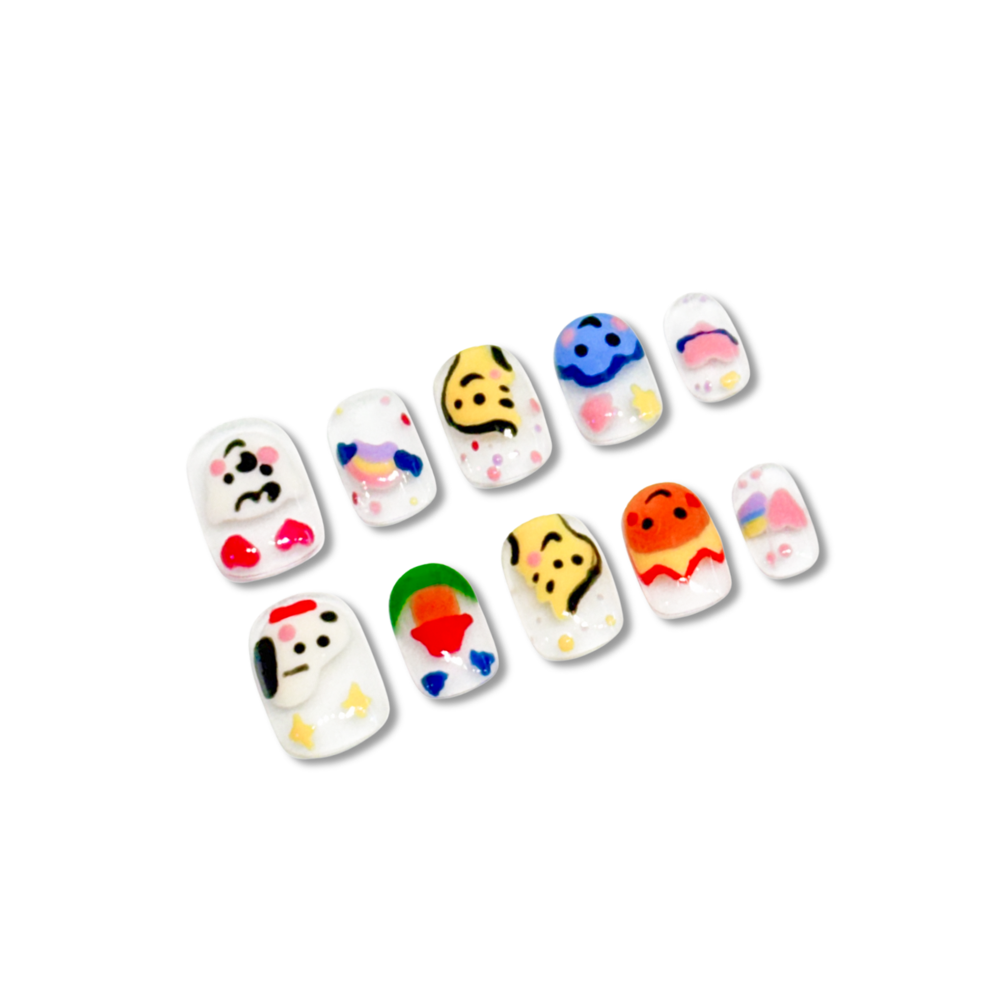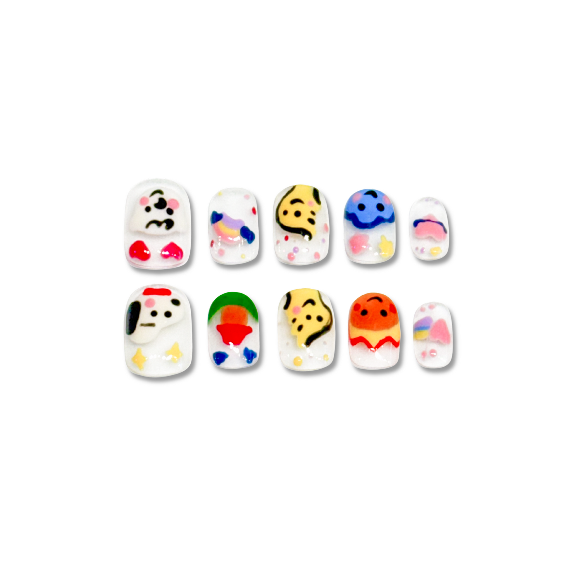 Each READY READY press-on is hand-tested for 30 days to ensure top quality. Snoop Pup showcases a vibrant, cartoon-inspired design featuring playful art that brings a whimsical, fun energy to your nails.