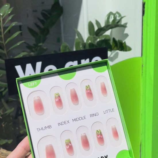 Each READY READY press-on is hand-tested for 30 days to ensure top quality. Tulips Flower features a pinkish nude base with cat-eye tips, adorned with delicate tulip designs in an oil-paint effect. Its elegant, artistic style adds a soft and sophisticated touch to any manicure.