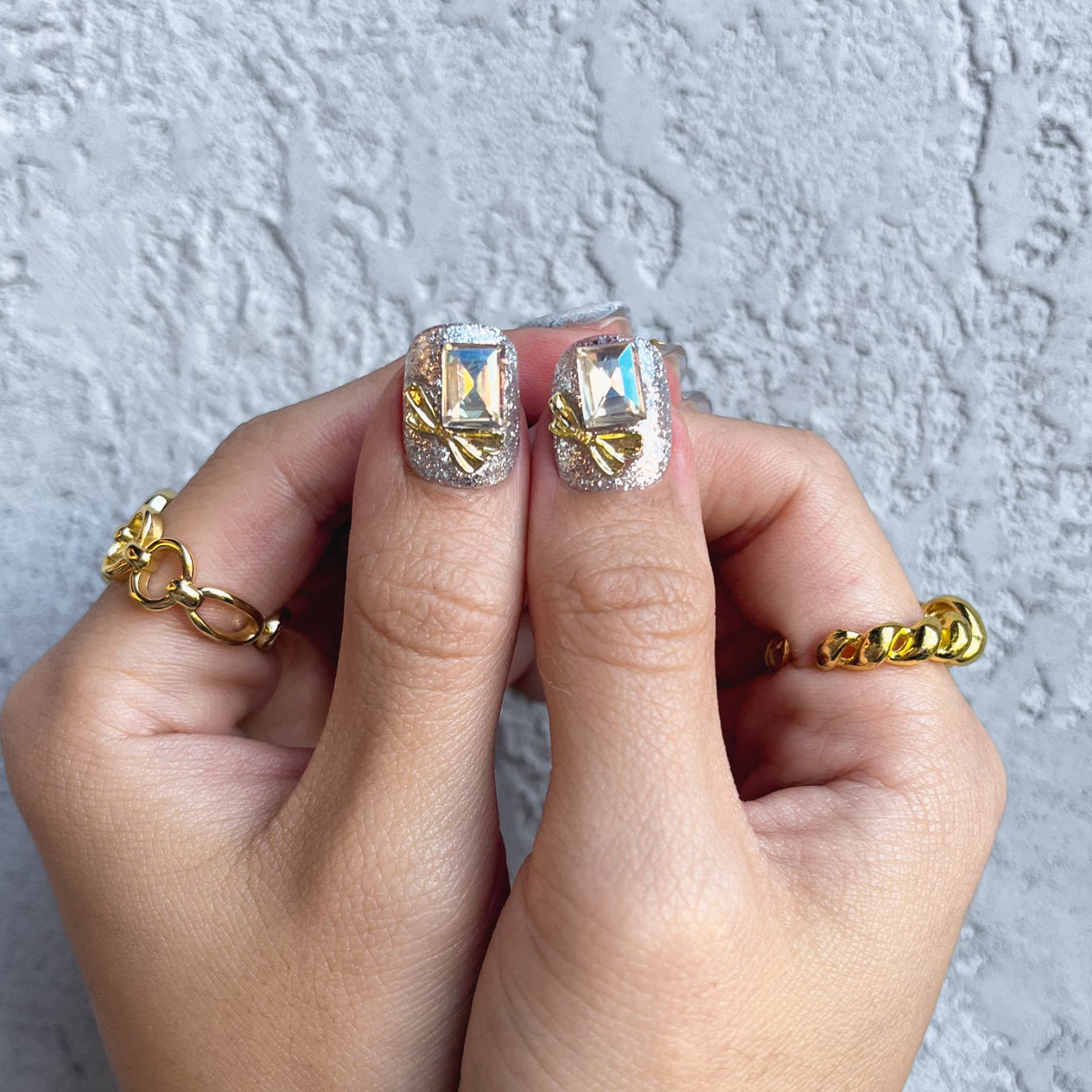 Each READY READY press-on is hand-tested for 30 days to ensure top quality. Frosted Treats nails feature a milky white base with delicate snowflakes, silver glitter, and sparkling diamond accents. Perfect for a festive, elegant winter look.