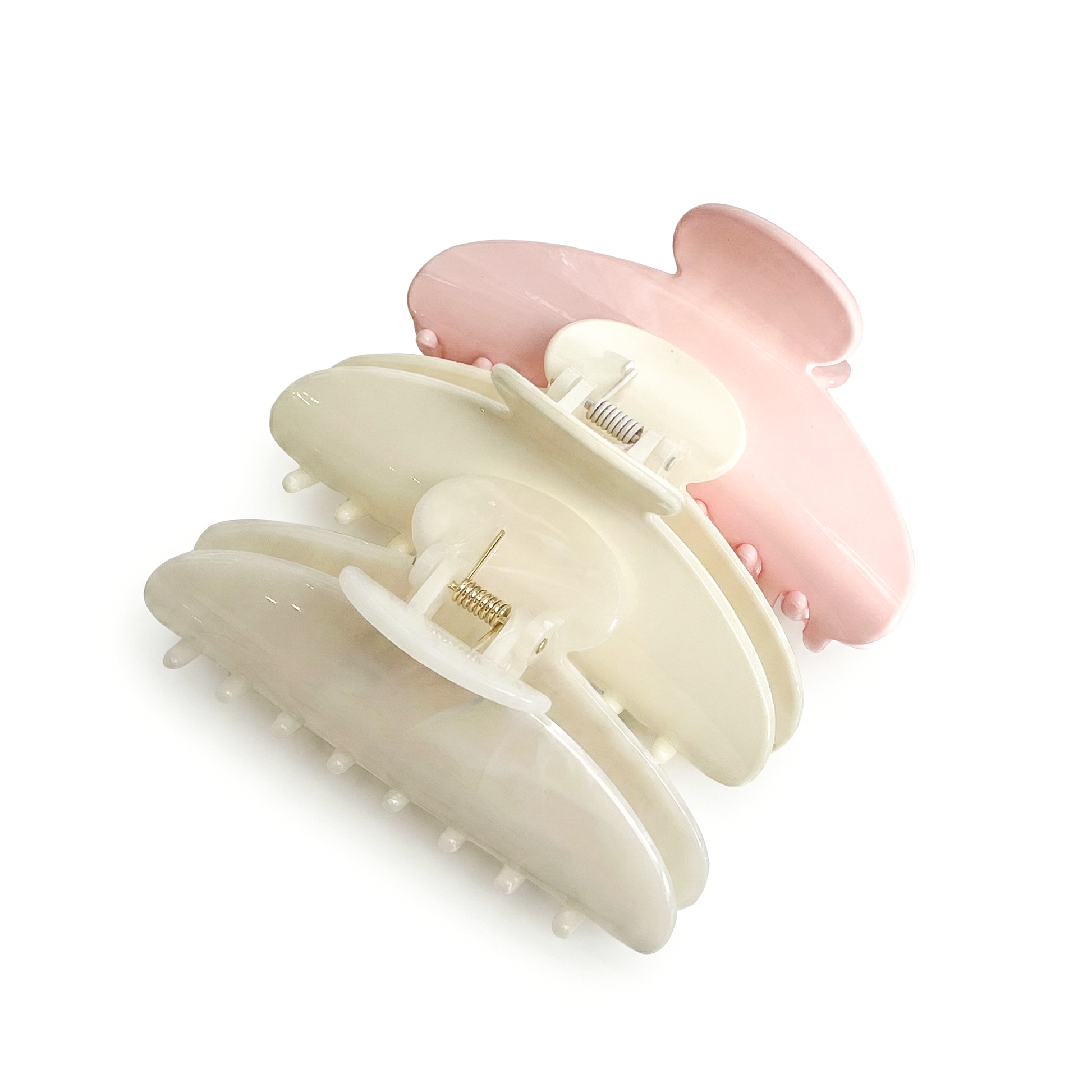 This minimalist acrylic hair claw clip provides a secure, gentle hold without snagging. Lightweight and smooth, it works for all hair types and effortless everyday styles. Available in white, cream, and pink for a simple, elegant finish.