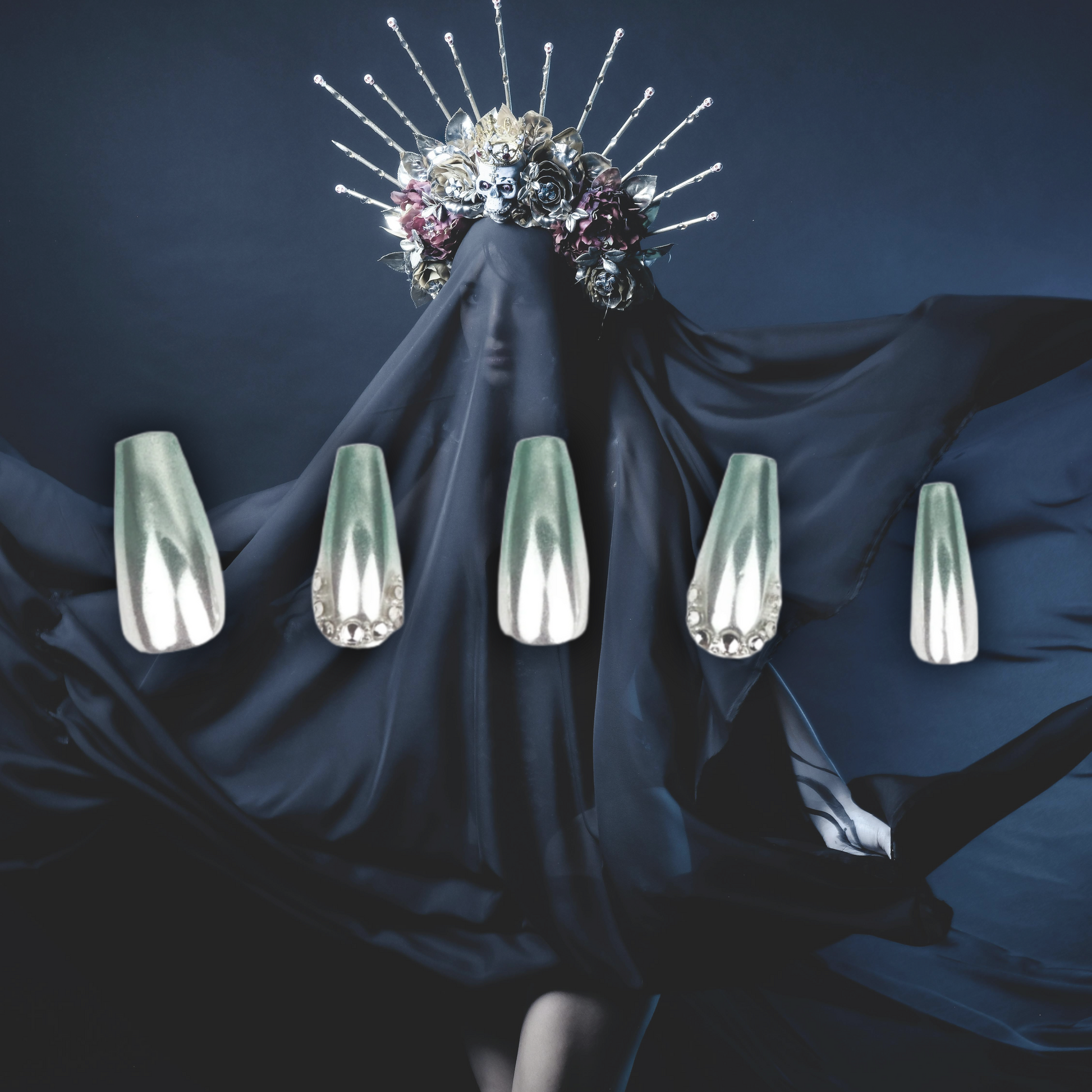 Each READY READY press-on is hand-tested for 30 days to ensure top quality.Moonlit Ocean features a blue base with a chrome gradient fading into the color at the tips. Its sleek, elegant design adds a sophisticated and eye-catching touch to any manicure. Perfect for a standout, chic look in seconds.