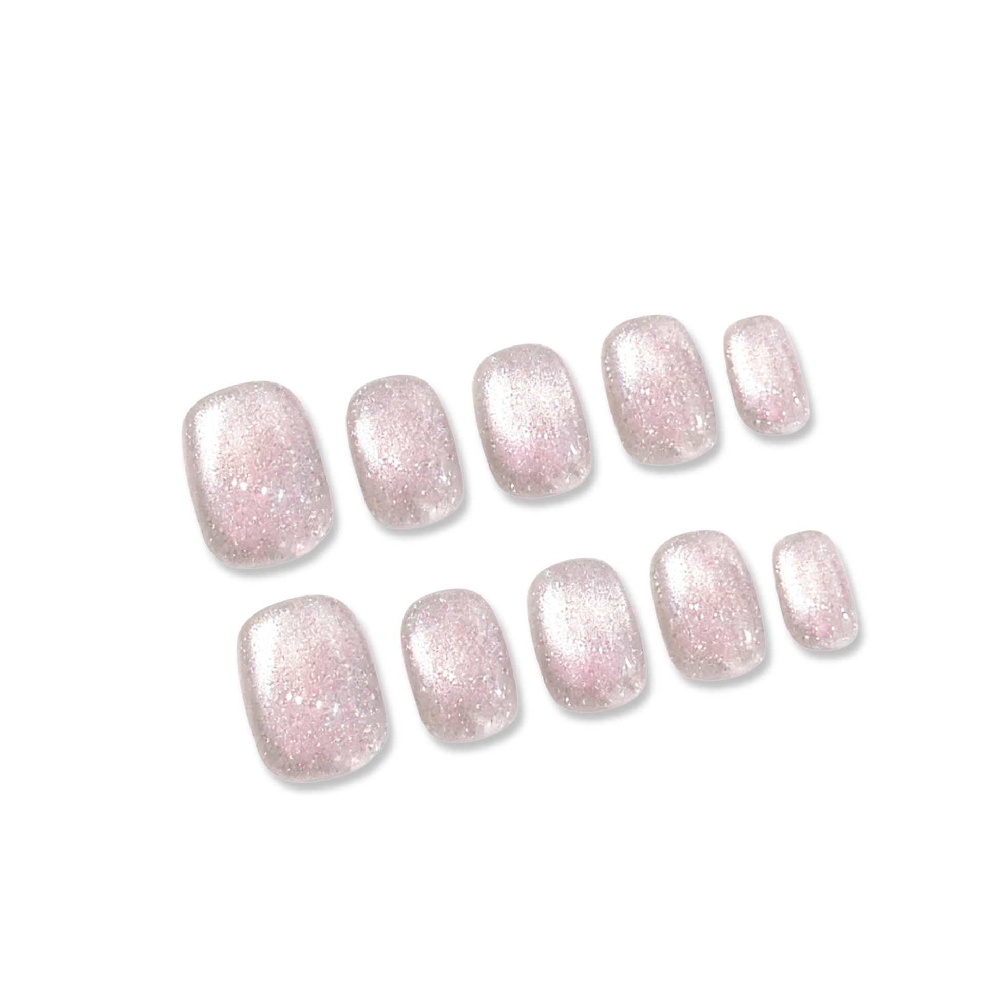 Each READY READY press-on is hand-tested for 30 days to ensure top quality.Pink Purple Cateye features a pristine white base that reveals a captivating pink and purple glow when exposed to sunlight. This dynamic effect adds a subtle yet striking dimension to the nails, combining understated elegance with a unique, light-responsive shimmer.