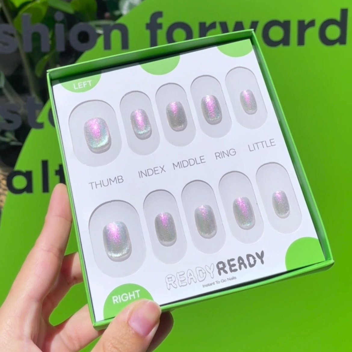 Each READY READY press-on is hand-tested for 30 days to ensure top quality. Pink Purple Cateye features a pristine white base that reveals a captivating pink and purple glow when exposed to sunlight. This dynamic effect adds a subtle yet striking dimension to the nails, combining understated elegance with a unique, light-responsive shimmer.