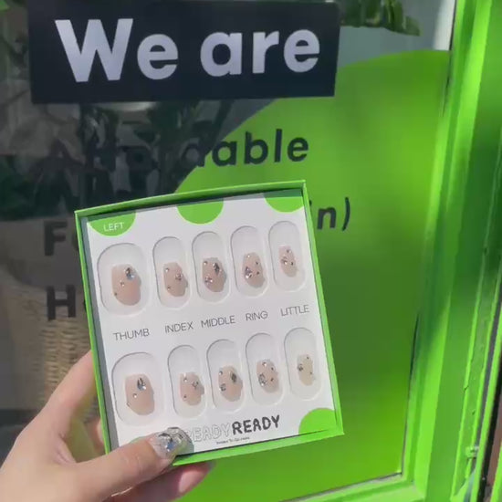 Each READY READY press-on is hand-tested for 30 days to ensure top quality. Star Fantasy features a subtle nude base elegantly enhanced with shimmering aurora-colored rhinestones.