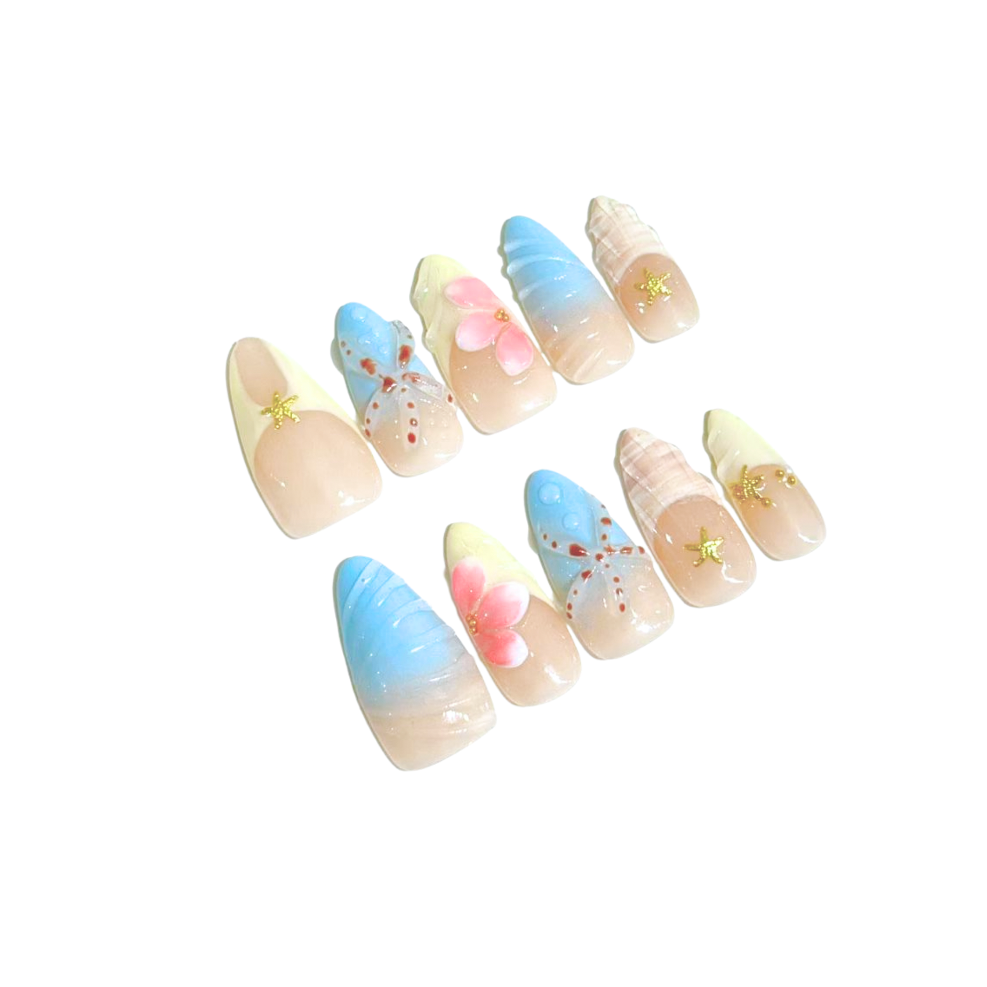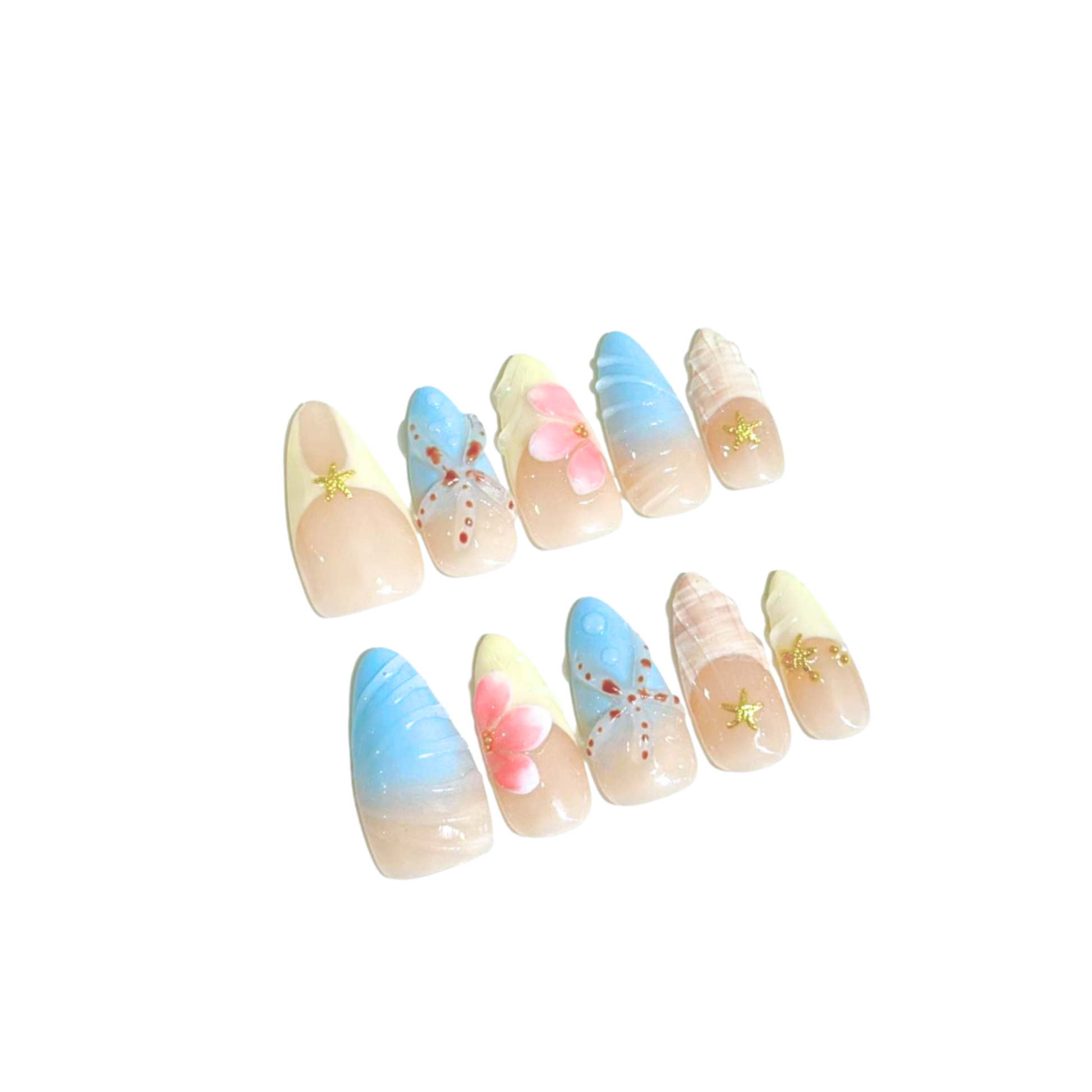 Each READY READY press-on is hand-tested for 30 days to ensure top quality. Capture the essence of the coast with Aloha Breeze, a seaside-inspired design that brings refreshing ocean vibes to your fingertips.